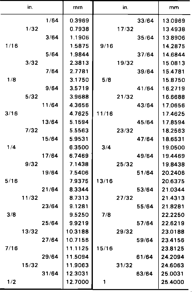 Fig. 3 Conversion Table, Inches To Millimeters: