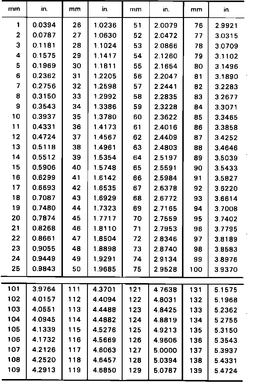 Fig. 2 Conversion Table, Millimeters To Inches: