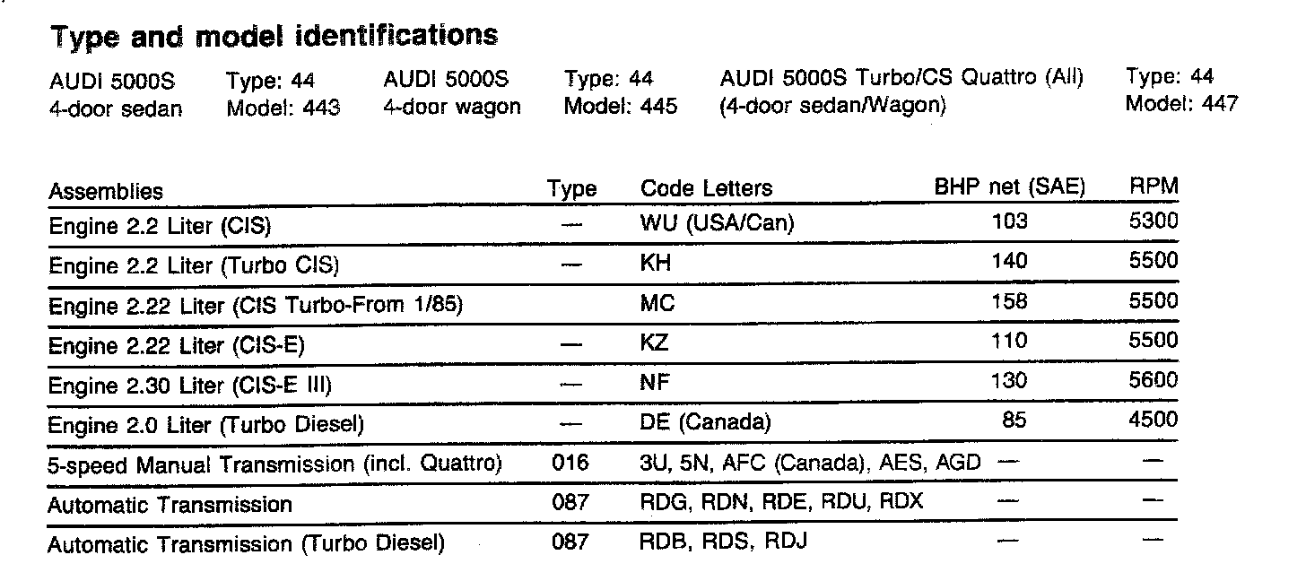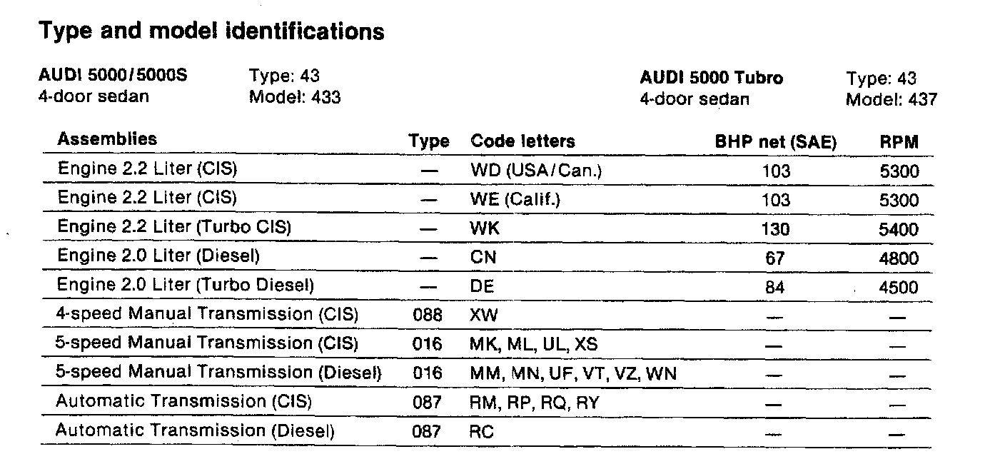 A/T & M/T Type And Model Identifications: