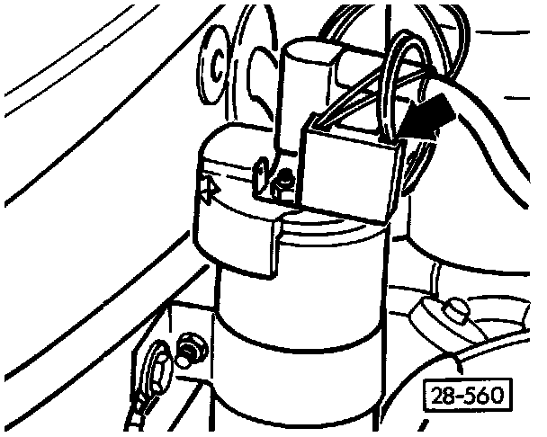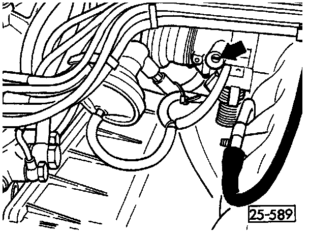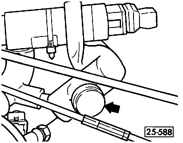 - disconnect and seal crankcase breather hose from cylinder head cover (arrow)