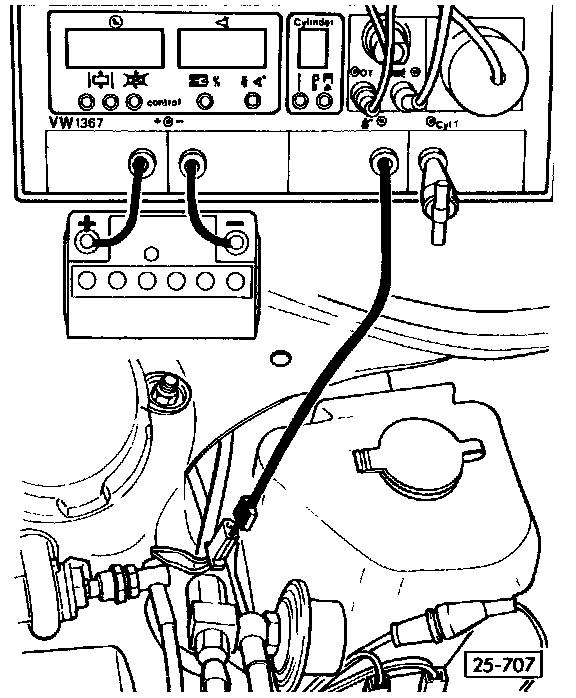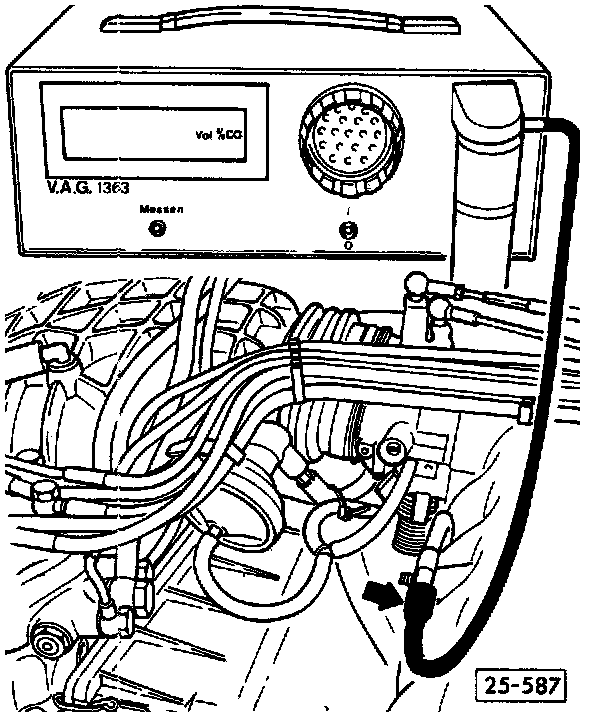 NOTE: After adjusting, the hoses for the crankcase must be reconnected. If the control current and the CO content change, this is not due to an improper adjustment, but rather to oil dilution caused by short distance driving. With long distance drives, the amount of fuel in the oil will be reduced and the CO value will normalize again. A short term solution would be an oil change.