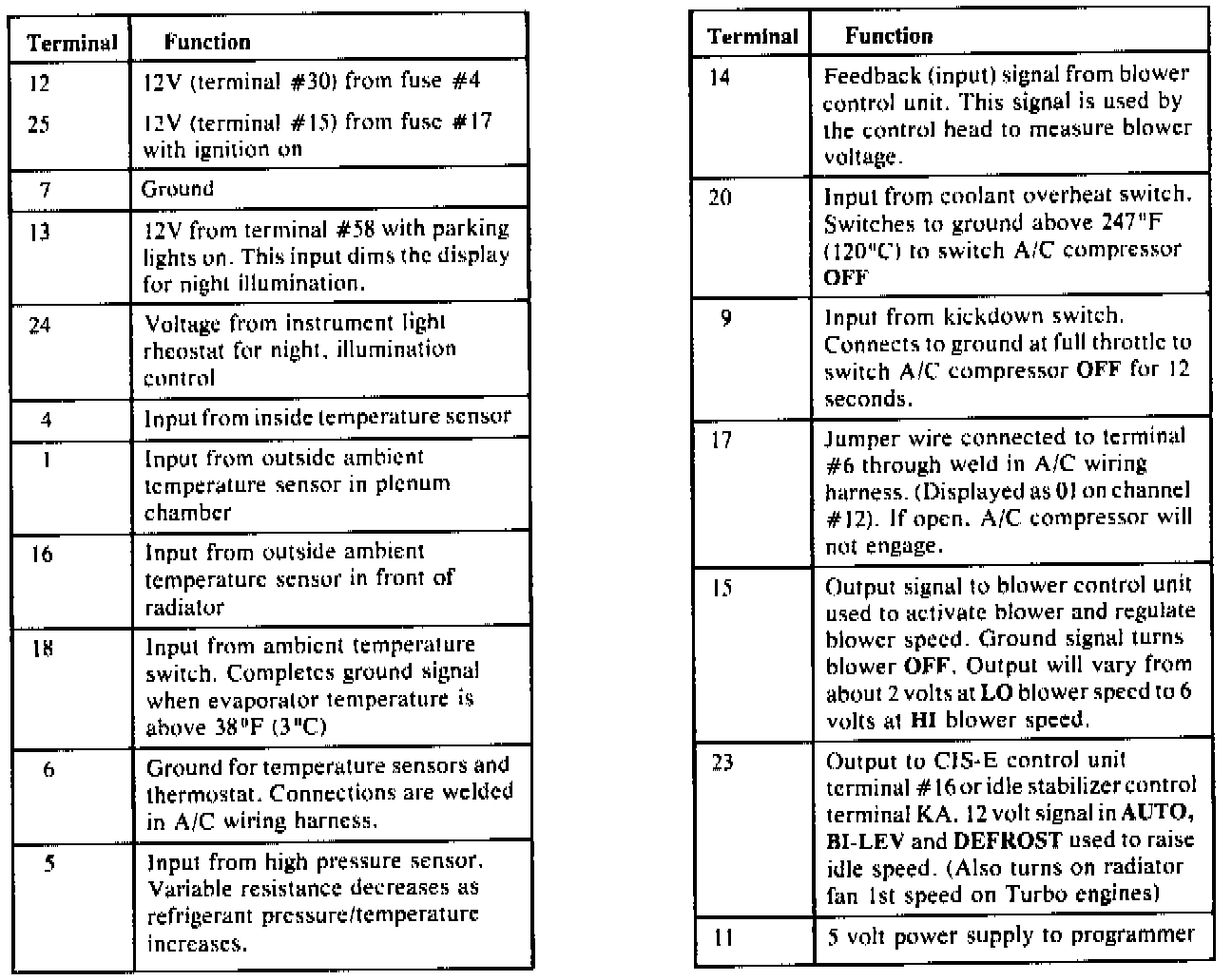 Terminal Number & Function