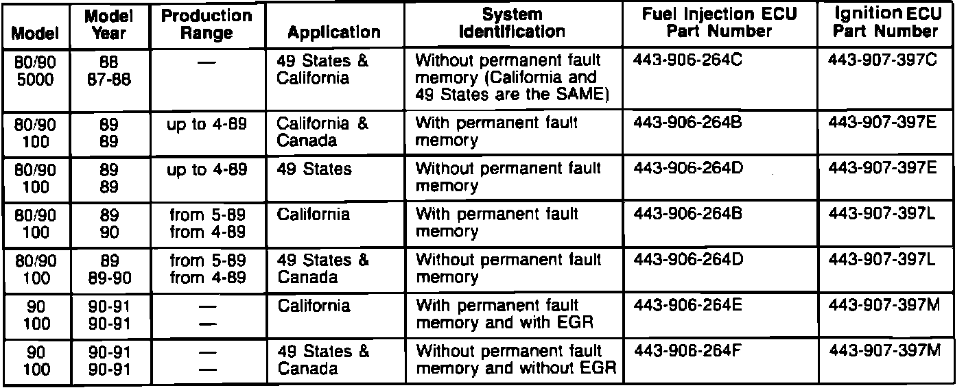 Fuel/ignition system 1988-1991 m.y.