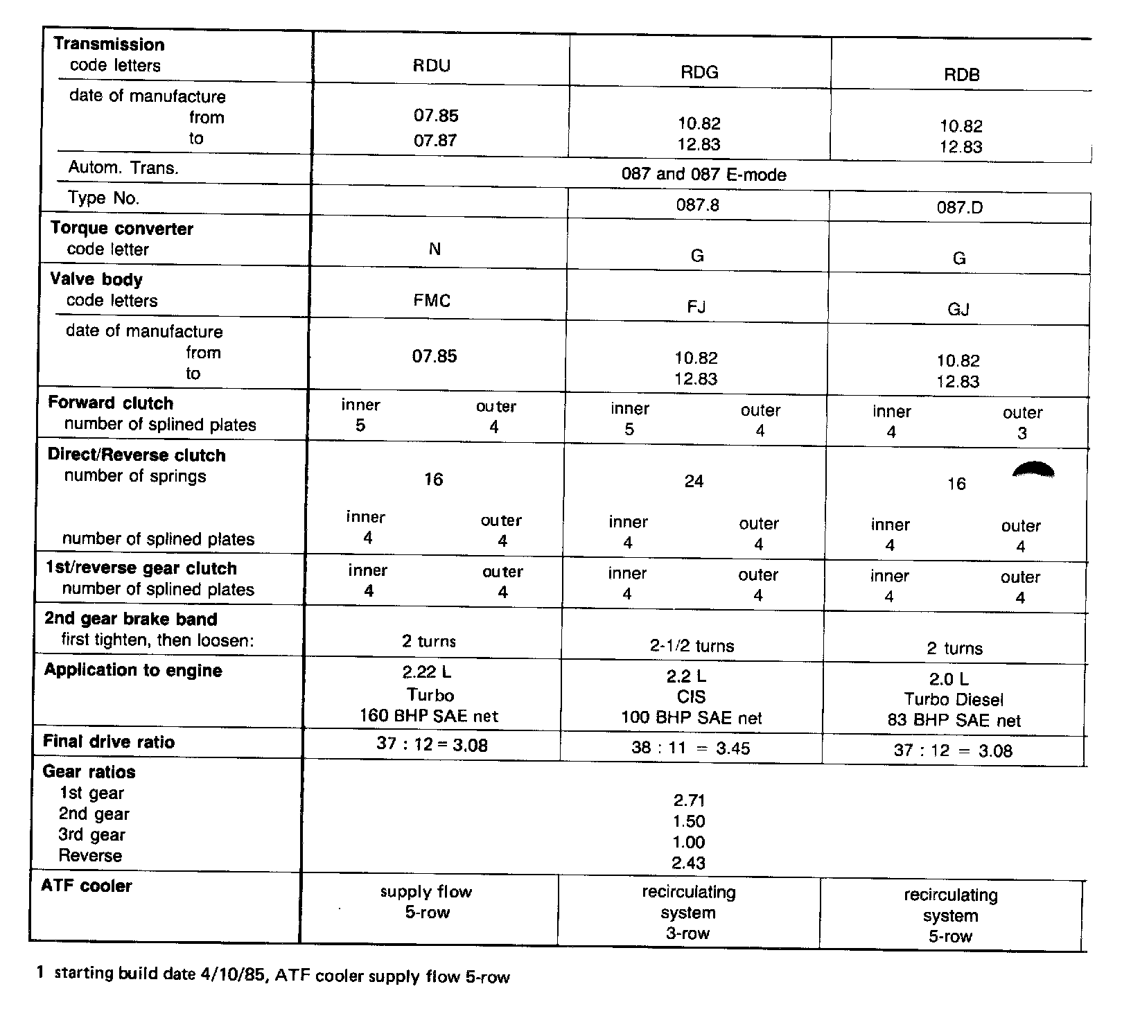 A/T Type 087 & 087 E-mode, Torque Converter Stall Speed:
