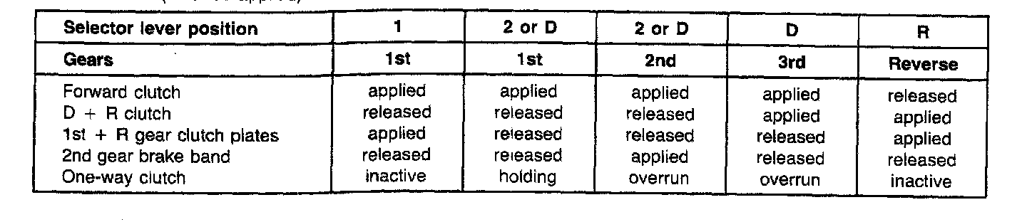 A/T Type 087 & 087 E-mode, Clutch And Brake Band Operation: