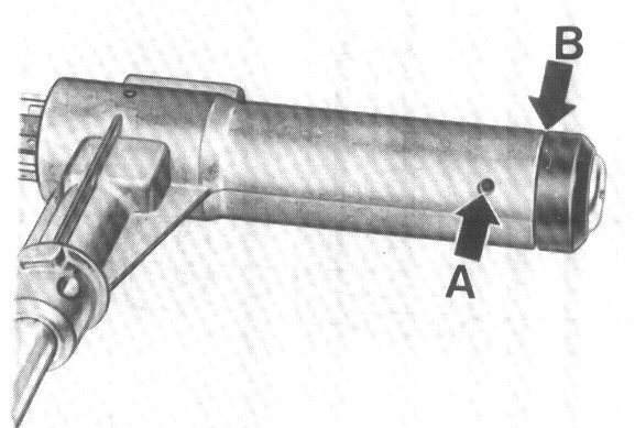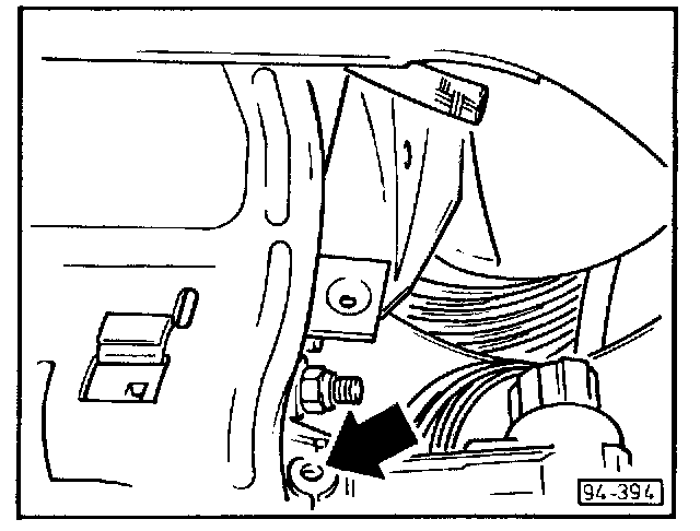 - drill out shear bolt with 3.5 mm (1/8 in) bit (arrow)