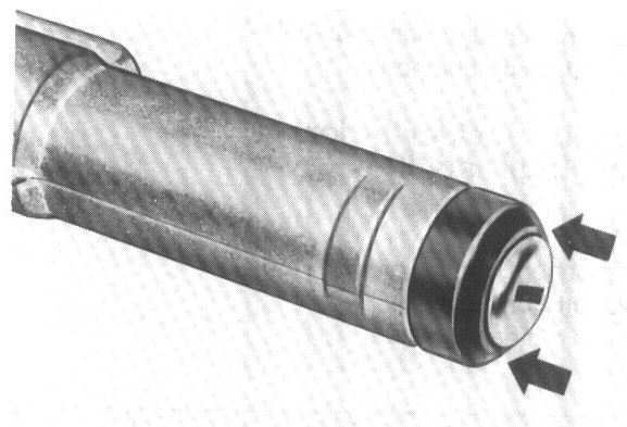 - push lock cylinder into housing until retaining spring engages (arrows)