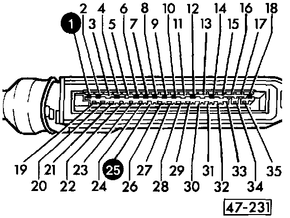 - repair break in wiring between fuel injection control unit terminals 1 and 25 using wiring diagram or replace fuel injection control unit