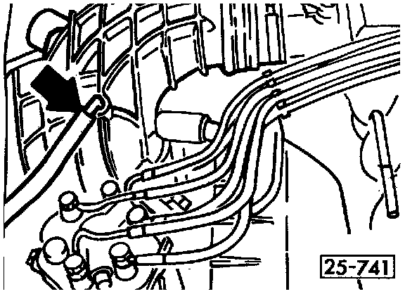 - disconnect and plug crankcase ventilation hoses at cylinder head cover (arrows)