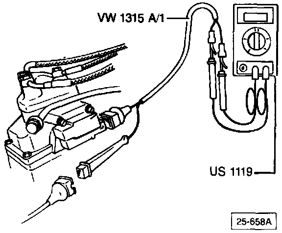- connect multimeter US 1119 or equivalent to differential pressure regulator with adaptor VW 1315 A/1