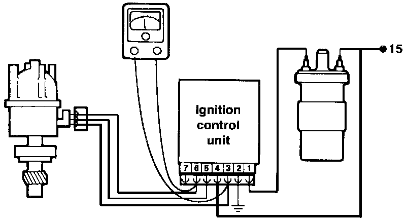 If there is no voltage at the distributor connector, check for voltage at the control unit.