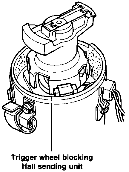 Note: Distributor cap retaining clips must not interfere with trigger wheel unit during test.