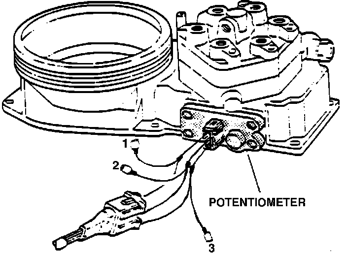 3. Turn ignition "ON". Voltmeter should read 4.35 to 5.35 volts (reference voltage from pin #26 of ECU to terminal #1 of potentiometer). If reference voltage is not present, check for open or grounded circuit to ECU pin #26 or open circuit between potentiometer connector terminal #3 and ground, repair as necessary and continue test from next step. If circuits are OK, then there is no reference voltage from ECU (faulty ECU).