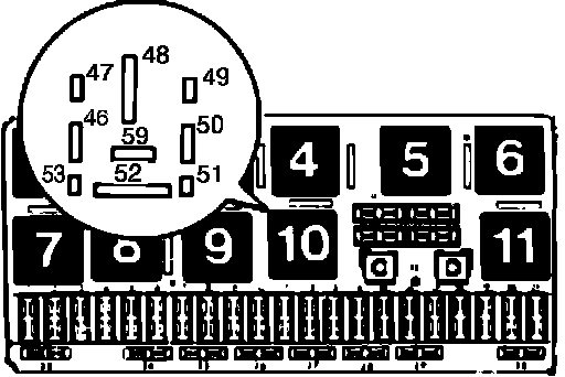 2. Remove fuel pump relay and operate fuel pump for 10 seconds by bridging between receptacle terminals 48 and 52 with a jumper wire.