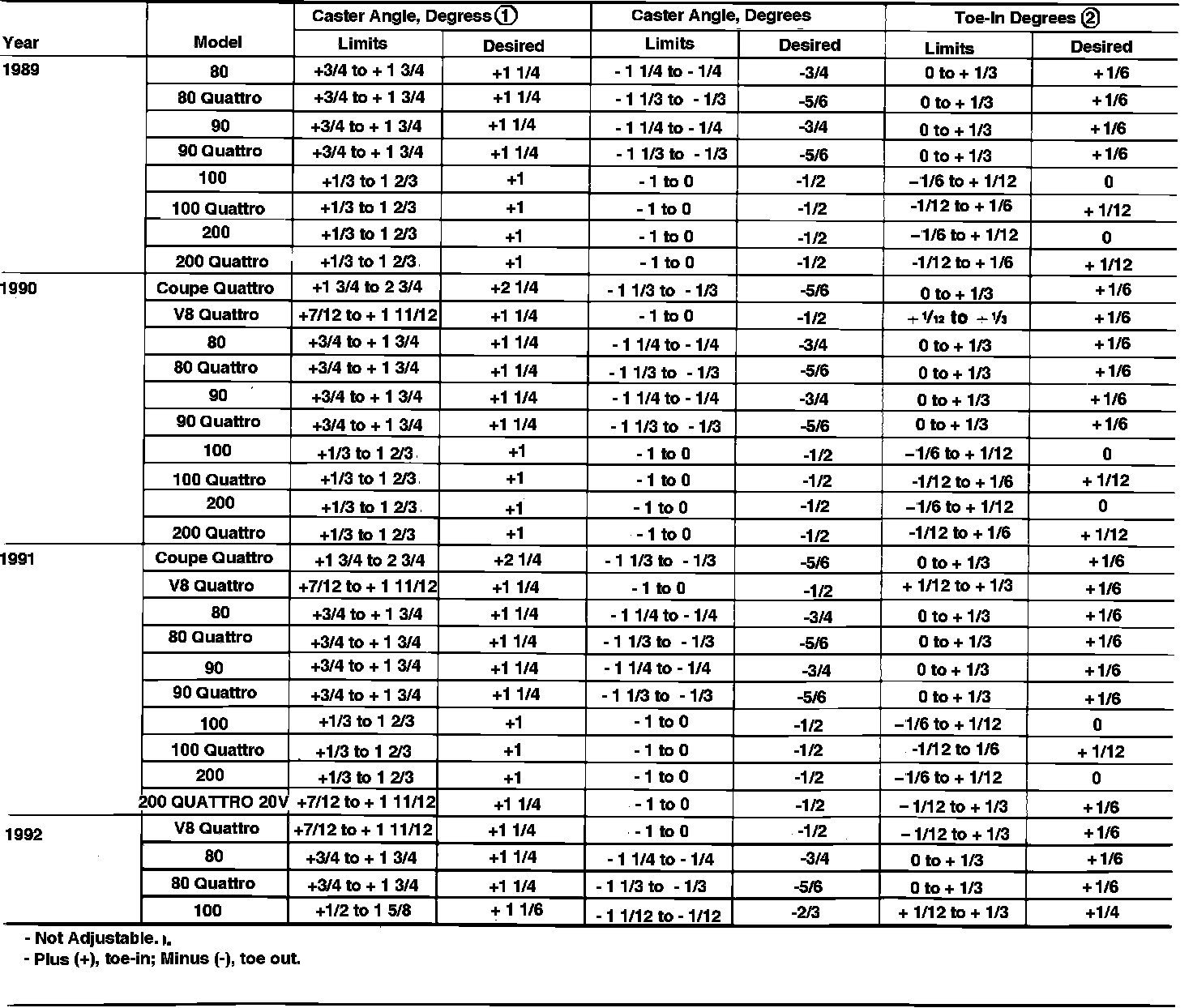 Front Wheel Alignment Specifications:
