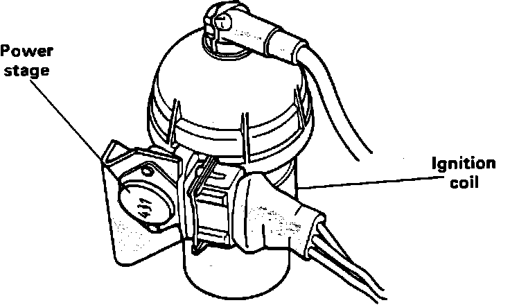 1. Remove harness connector from ignition output stage (power transistor next to ignition coil).