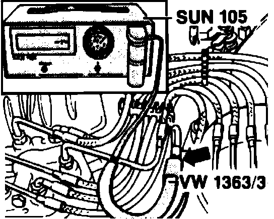 4. Connect VW 1367 or equivalent engine tester according to manufacture's instructions.
