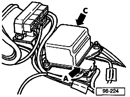 WARNING: Disconnect airbag power supply connector before working on the airbag system, or related systems.Triggering unit