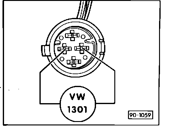 ^ using jumper wires, connect test unit VW 1301 to fuel gauge sending unit connector as shown