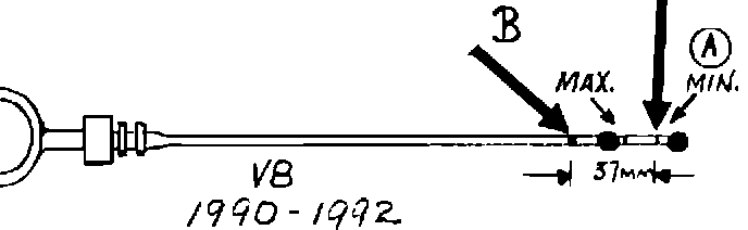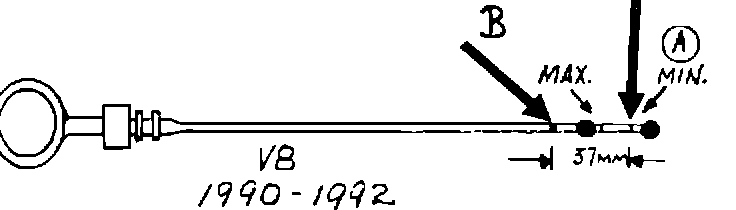 To modifiy the V8 dipstick, Part No. 018 321 431 D, measure from the minimum groove 37mm upwards and mark the shaft at this point (arrow B).