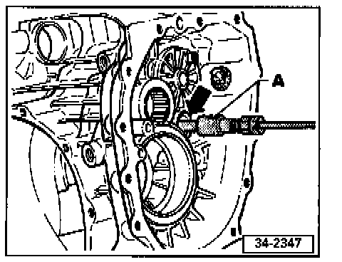 - Use special tool VW 771 and internal extractor -A-, e.g. Kukko 21/3 18.5-23.5 mm