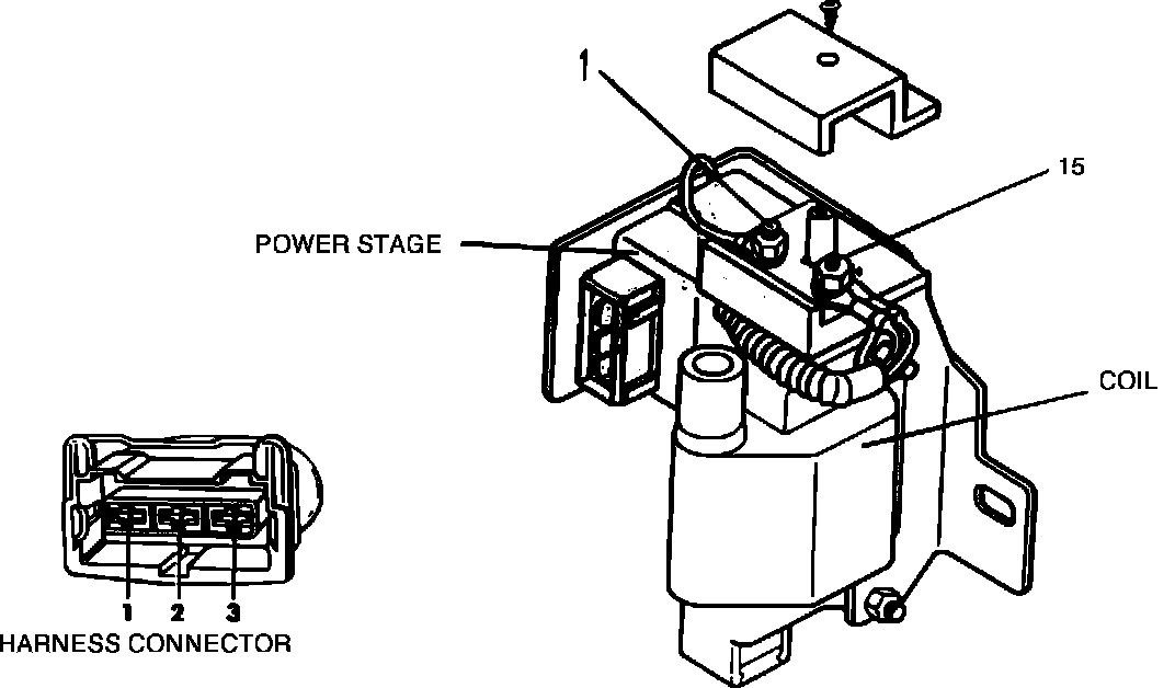 1. Disconnect harness connector from power output stage on BOTH ignition coils.