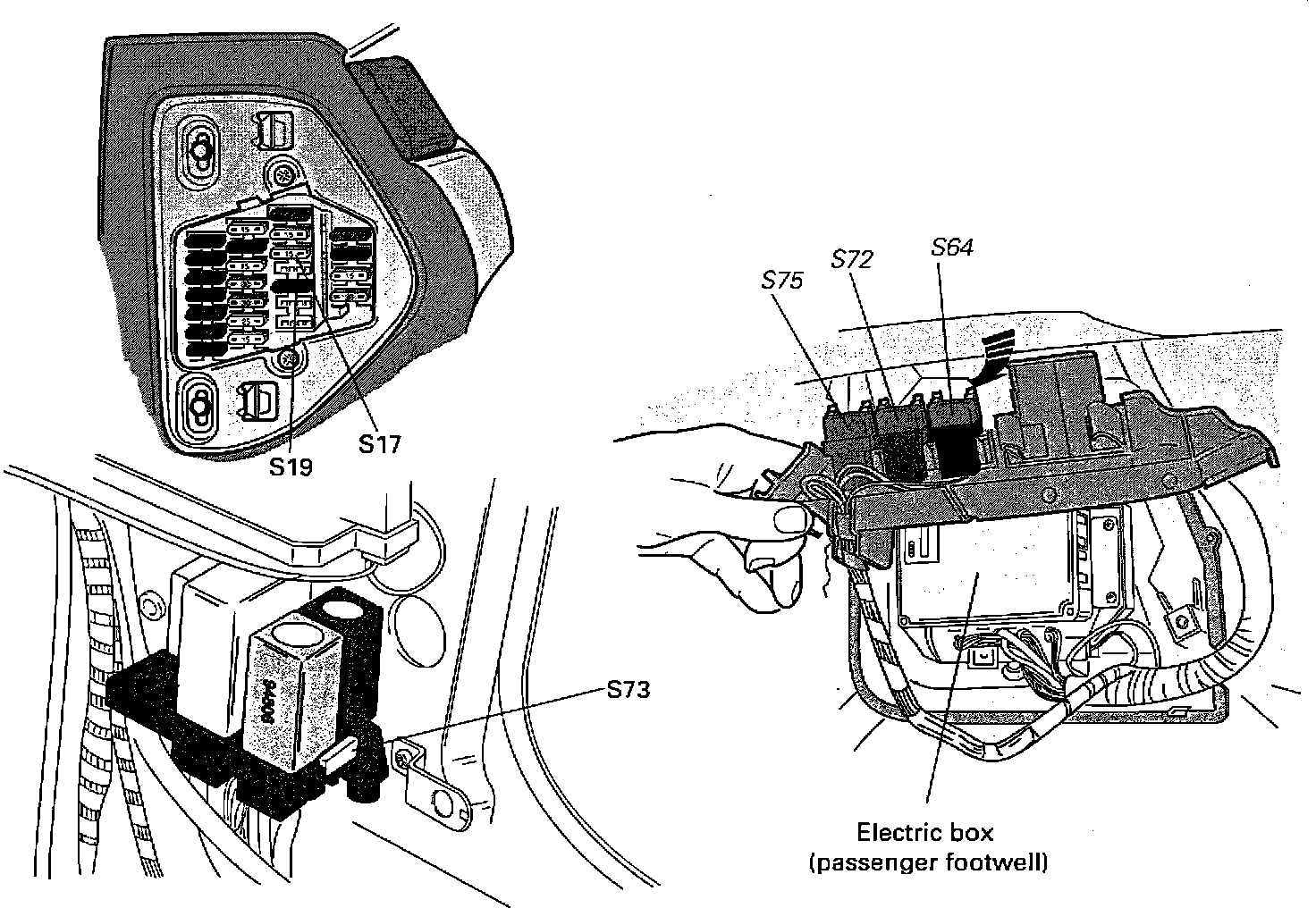 5. Check that fuses S17 and S19 in the fuse panel are GOOD. Thermofuses S72, S73 and S74 in the electronic control box must also be GOOD.