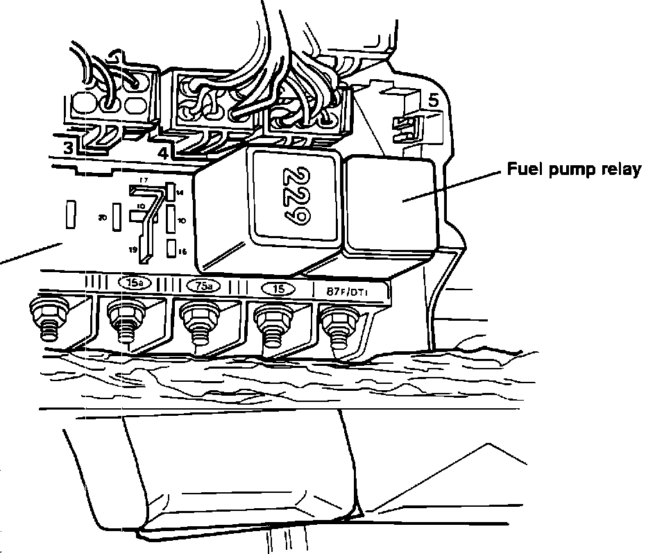 8. After the MPI ECM activates injector # 5, it will automatically switch to the next component on the activation sequence list, (see activation sequence above) which is the Fuel Pump Relay. To activate it connect bridge connectors (A & B) together for at least 4 seconds, then separate.