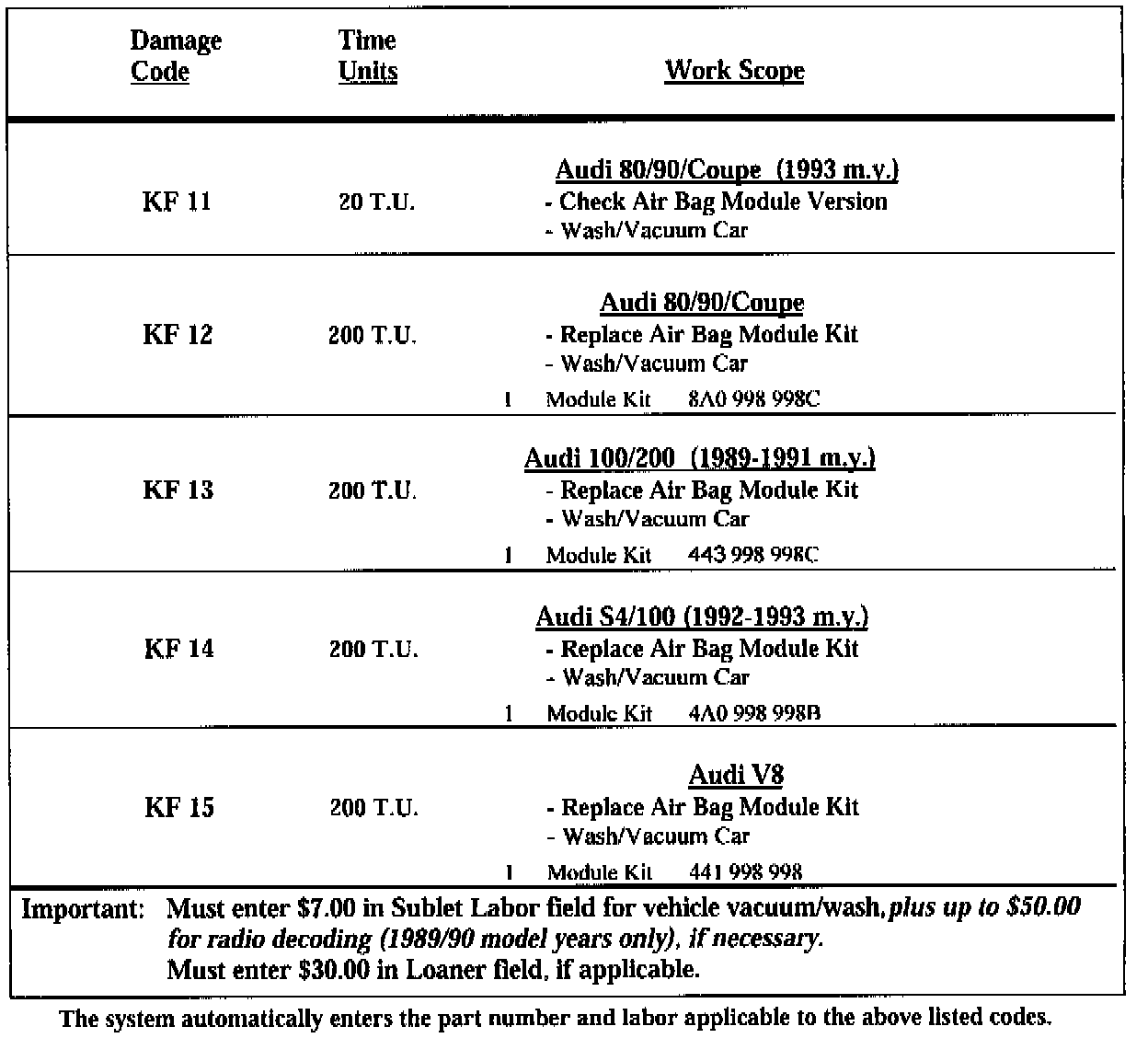 1989-93 Audi Vehicles Equipped With