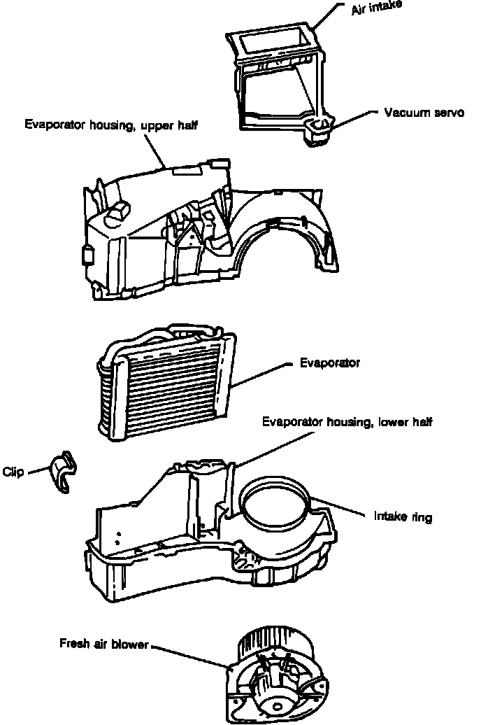 3. Remove heater/evaporator housing, refer to Heater Core.