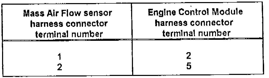 - check signal wire for continuity between terminal 1 of MAF sensor and terminal 42 of Test Box.