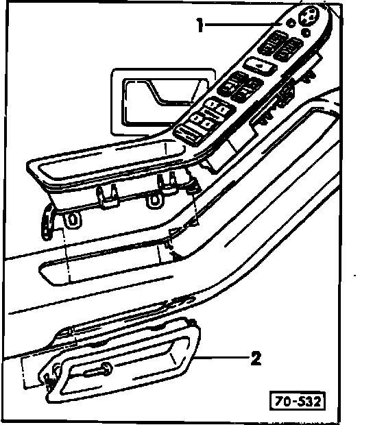 - remove screw mounting armrest lower part -2- to upper part. Pull out armrest lower part toward rear.