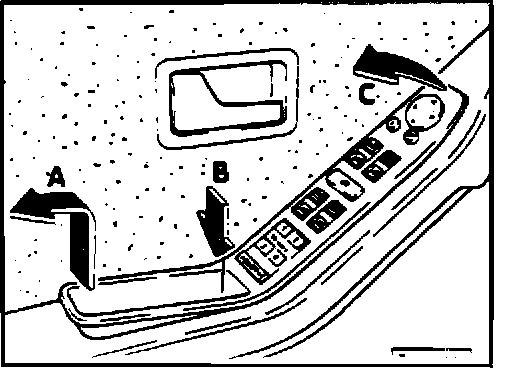 - press down armrest upper part at bend (arrow B) and pull out of door trim panel at upper end (arrow C).