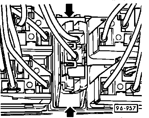 - carefully pry out lockout switch by inserting a small screw driver in slots (arrow) and pushing toward center of switch.