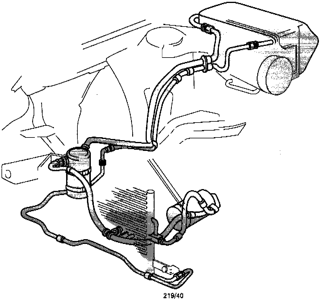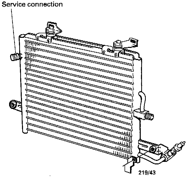 Because of the R-134a system design, refrigerant system evacuation and charging is now done only through the high pressure side. The service port is also a special quick connect coupling to prevent attaching R-12 equipment. The service port location is: