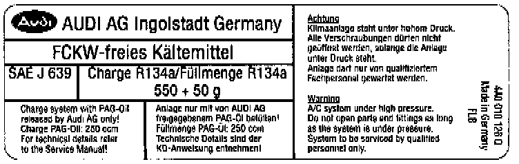 Audi R-134a systems use a smaller refrigerant charge than comparable R-12 systems. Because of this, proper refrigerant charge level is very critical.