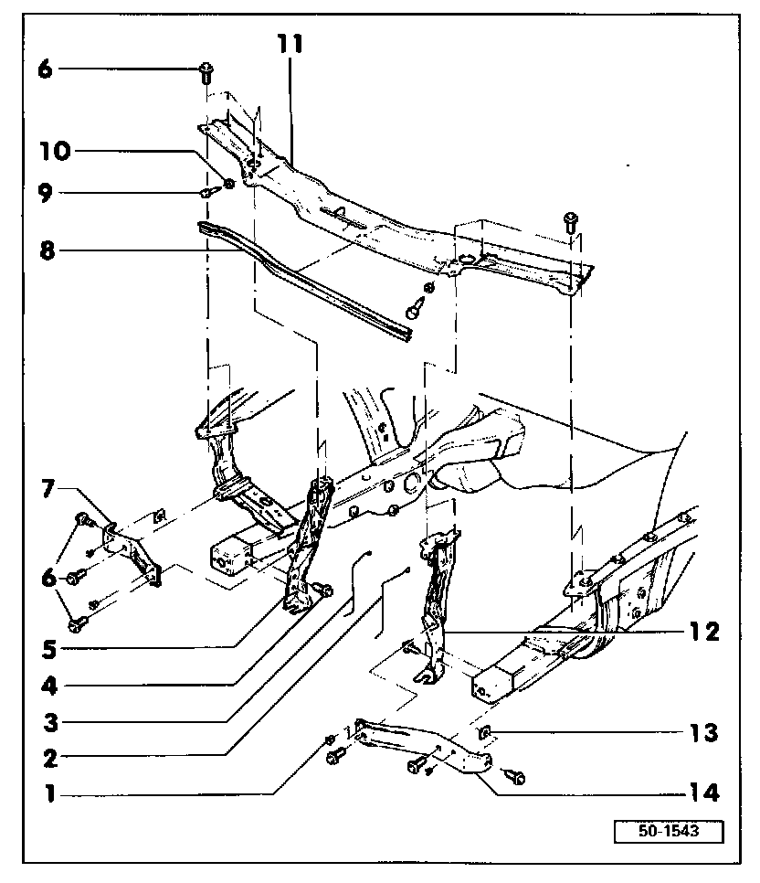 - Remove radiator and lower radiator mounting bolts, then disconnect Bowden cable from lock carrier plate -11-.