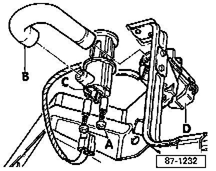 - Ensure hose -B- fits tightly on sensor -C- and fan -D-.
