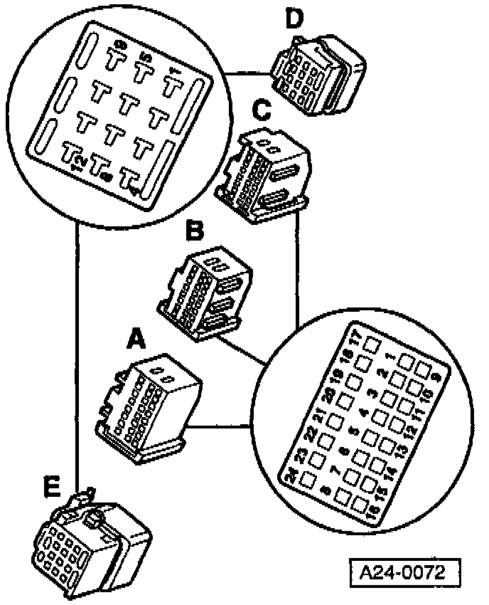- Check ground wire continuity of knock sensor 1 -G66- between terminal 1 of connector in engine compartment and test box socket A14.