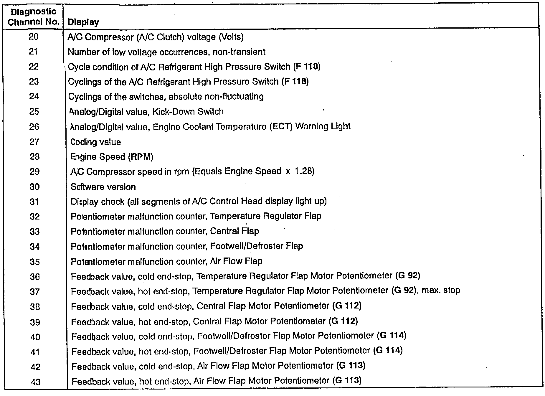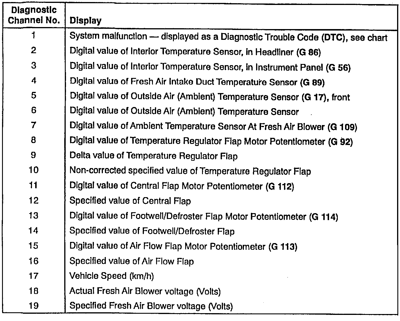 Note Air Flow Flap Motor (V 71) and Potentiometer (G 113) are not installed in USA/Canada vehicles. Disregard values displayed for these components.