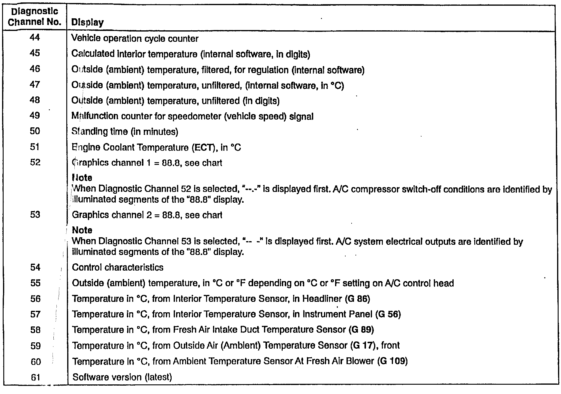 On-Board Diagnostic (OBD) Display, Channels 1-61