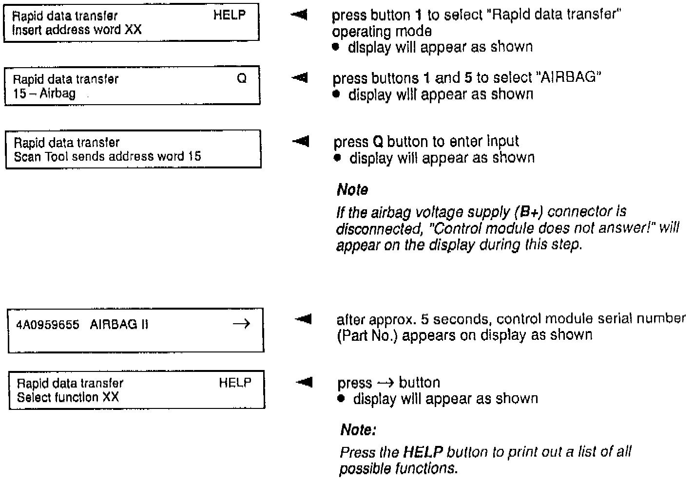 ^ To conduct an automatic test sequence, input address word "00"and acknowledged with the "O" button. The DTC memory will be activated in all systems with rapid data transfer.