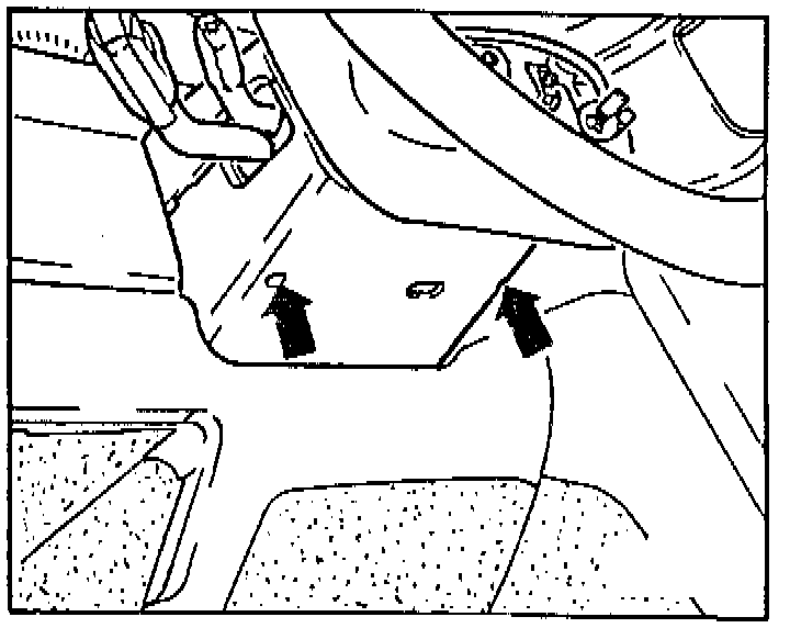 - remove airbag unit (spiral spring) connector -arrow- from right side of lower steering column trim by gently depressing lug (in the center lower part of the connector) with a screwdriver and pulling connector out