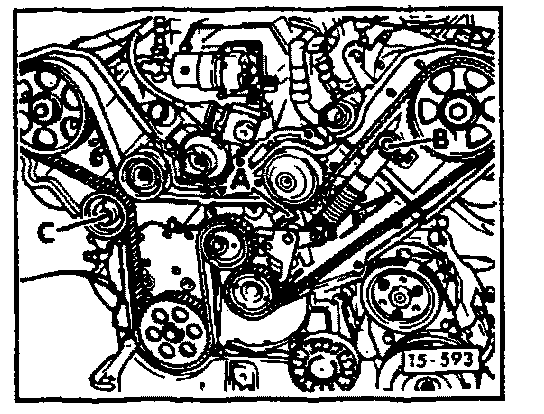 Note: Before installing a new belt, the rollers and tensioners must be checked for dirt, rough running and ease of rotation. Clean or replace rollers and tensioners as necessary.