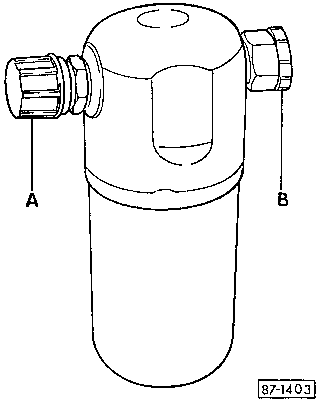 Do not remove caps -A- and -B- until ready to install new accumulator. If caps are removed too soon, the desiccant becomes saturated with moisture after a very short time. If this occurs, the accumulator must be replaced.