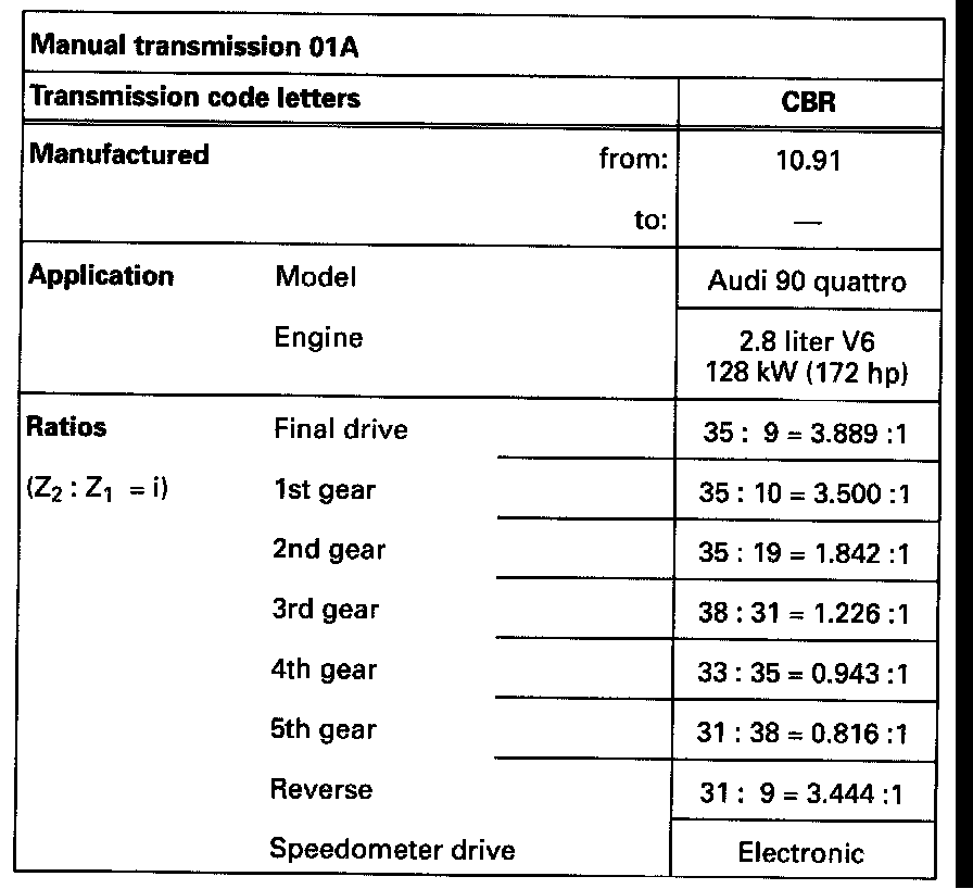 Manual Transmission/Transaxle: Specifications