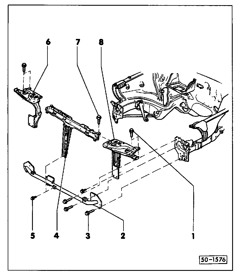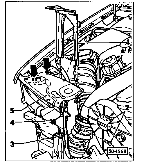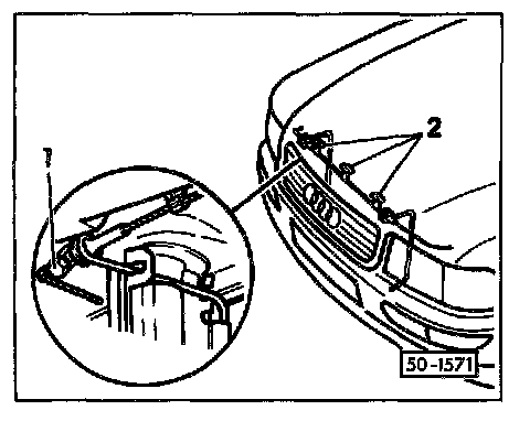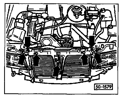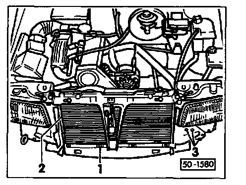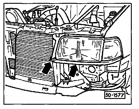 - Remove bolts -1- and remove lower cooling air duct from crossmember.