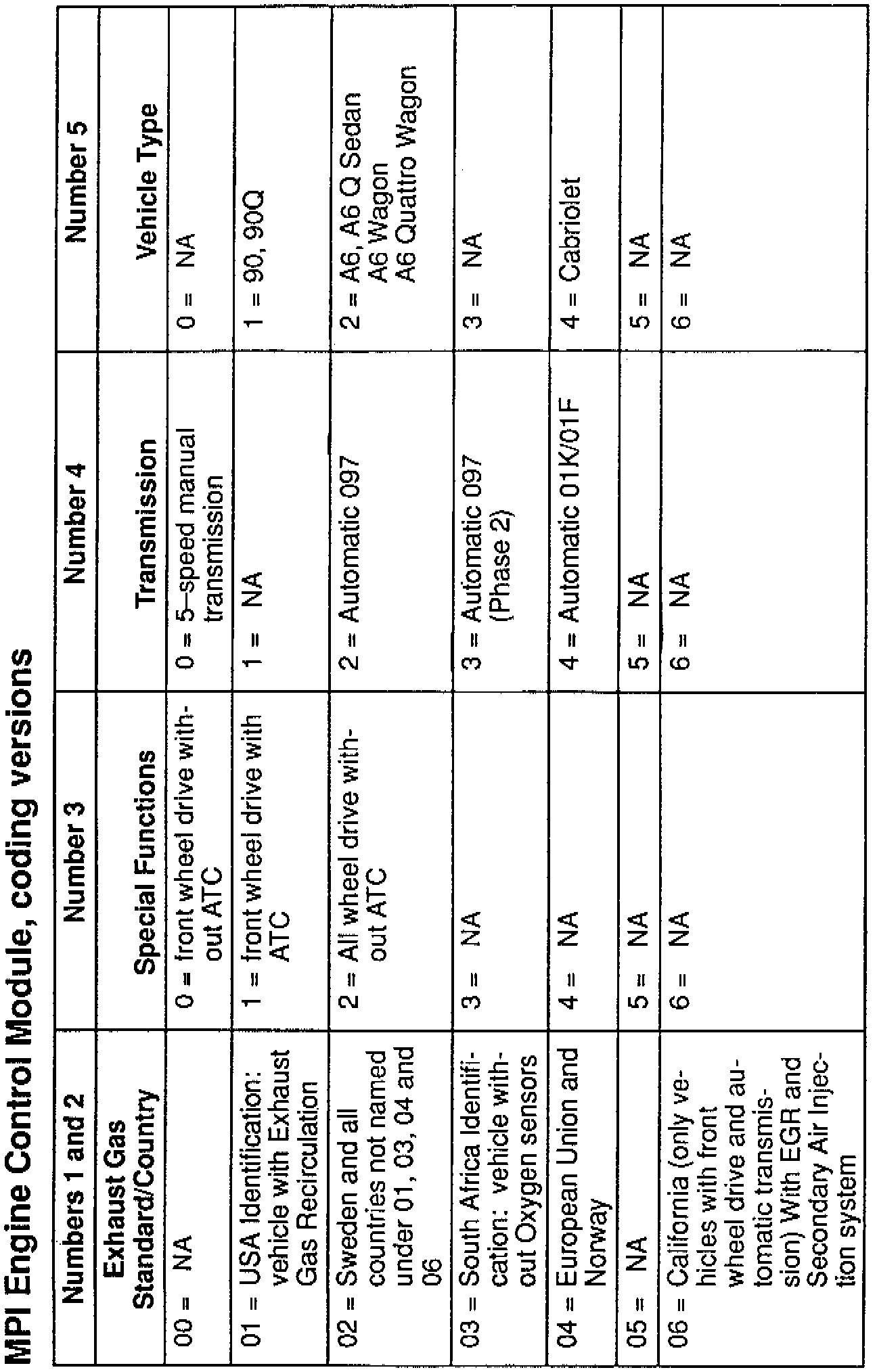 2. Verify vehicle is equipped with MMS-311 using 1551 printout of ECM part number (8A0 906 266E) or check engine block for engine code AFC.
