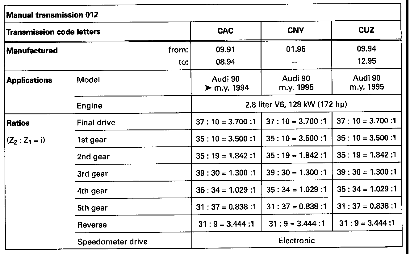 Code Letters, Engine/transmission Applications, Ratios, Equipment I: