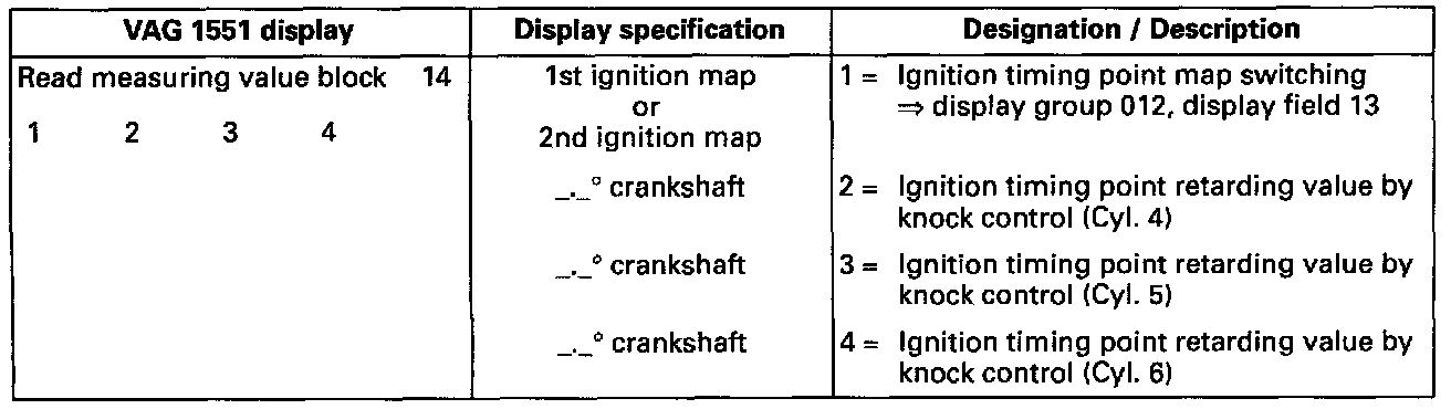 VAG 1551 Display, Measuring Value Block Display Group 014: